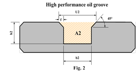 The rectangular shape with small chamfers has allowed reduction of the groove width at the top (U) by at least 30%. On the other hand the cross sectional area A has not changed due to an increase of both groove width b and groove depth h.